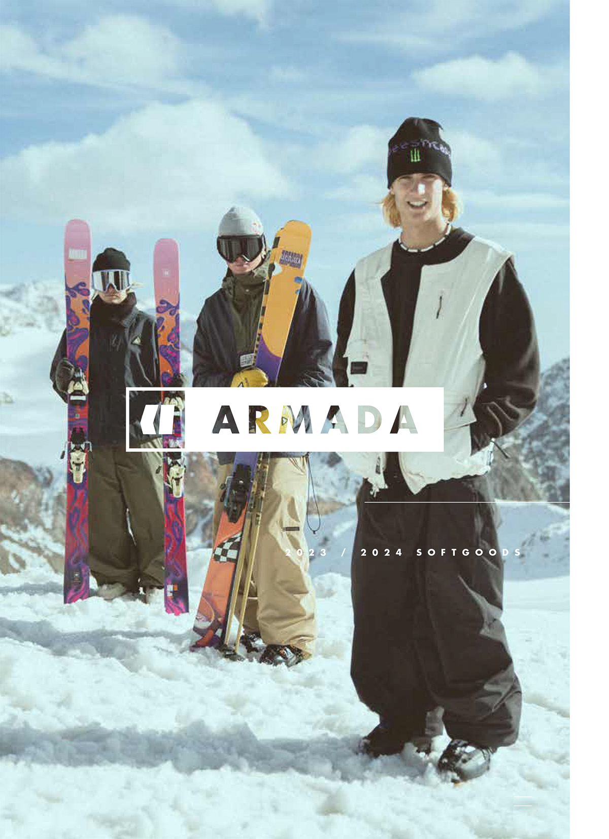 ARMADAのミッションはスキーとアート、そして山への情熱を世界と分かち合うこと。常にシーンの最前線で限界をプッシュするライディングと革新的なモノづくりで進化を続け、今や世界のトップブランドとして不動の地位を築き上げた。ブランド創設期のニュースクールといわれたパークでの横ノリ系のイメージからバックカントリーへ、そして今やツアーリングまで、ARMADAのフィールドは地球規模だ。日本でもARMADA人気の勢いはとどまるところを知らない。