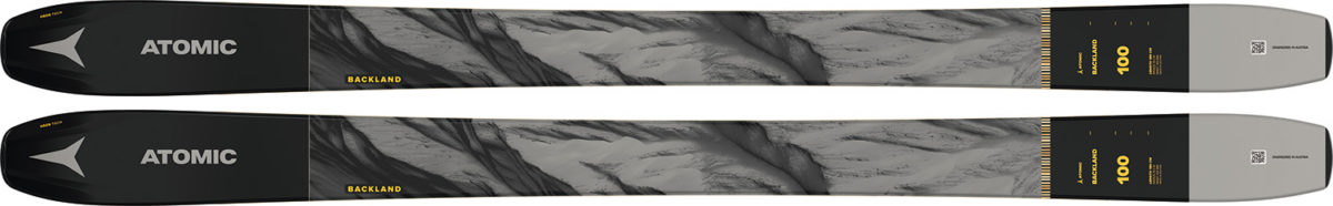 よりバックカントリー系に近いのがロングランで人気を集めてきたATOMICフリーライド系のアイコンともいえる「BACKLAND」のシリーズ。プロスキーヤー児玉毅の愛用モデルとしてもよく知られている。頭の部分は全部ホライゾンテックでセンター幅117㎜から78㎜まで、細かく用途に対応できるようにセットアップされている。’22-23シーズンはラインナップや機能性はそのままに、グラフィックが変更されている。