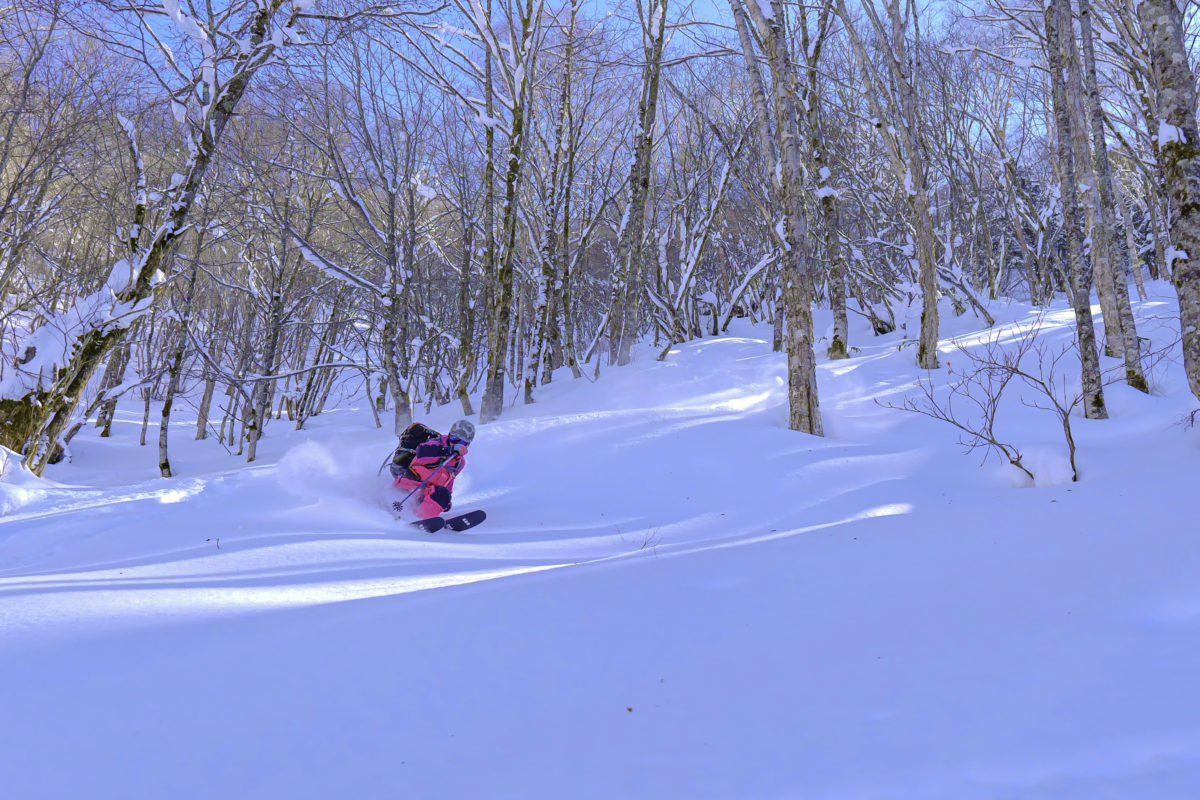 ちなみに、各モデルは「I(イ)」…センター122mmのパウダーフリーライドモデル、「RO(ロ)」…センター105のオールマウンテンモデル、「HA(ハ)」…センター90のフリースタイル&パークモデル、「HO(ホ)」…センター100のフリースタイル&パークモデル の4種類。乗り手の志向に合わせて好みの太さ・長さのモデル、さらにグラフィックの掛け合わせを楽しめる。