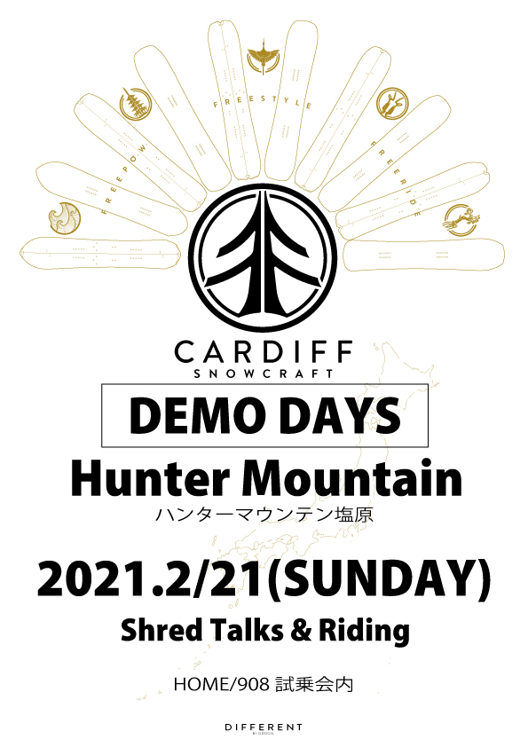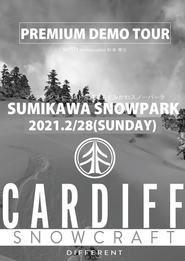 そのようなスノーボード界にとっても新しいカーディフスノークラフトの試乗会が各地で開催される予定。板の性能を確かめるにはその地に赴いて実際に滑るのがベストだ。