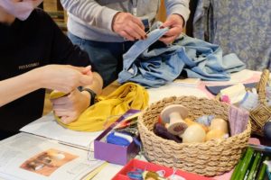 手縫いで穴の空いた靴下の補修を学ぶワークショップを開催。穴の空いた靴下があれば持参を。(所要時間約30分)