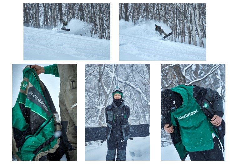 再始動する2022A/Wカプセルコレクションは、スノーボードウェアや定番のカジュアルウェアにエコポリエステルを用いたアイテム、アクセサリーなどがラインナップし、機能性とオリジナリティーを両立したinhabitantらしいアクティブなユースカルチャースタイルを提案する。