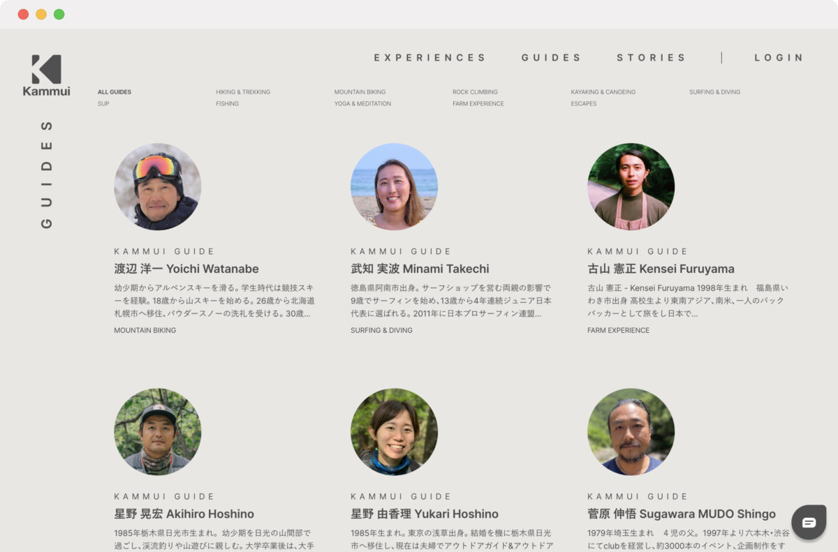 例えば、「家族みんなで楽しめるアクティビティは?」「自分の限界に挑戦したい!」といった特定のアクティビティから探すのではなく、自ら持つスタイルによって選ぶ「Kammui Style」も提供。テーマによって探すことができるので、これまで体験したことのないアクティビティへの理解も深まるだろう。