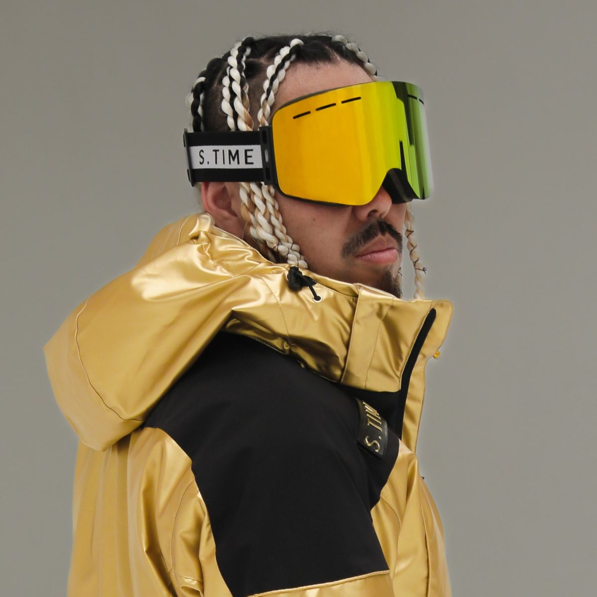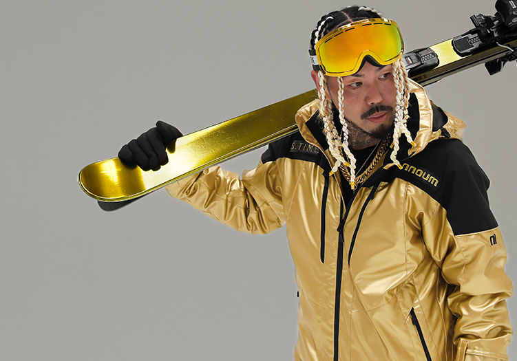 元アルペンスキー日本代表、楽曲「ヤクブーツはやめろ」でSNSでも話題のラッパーSHOが手掛けるブランド「S.TIME」とタナベスポーツのプライベートブランド「nnoum(ノアム)」がこの度コラボレーション。SHOの愛車である「ゴールドベンツ」にちなんだ、金ピカすぎるウエアやゴーグルなど、タナベスポーツ公式オンラインサイトにて全5アイテムを限定発売だ。