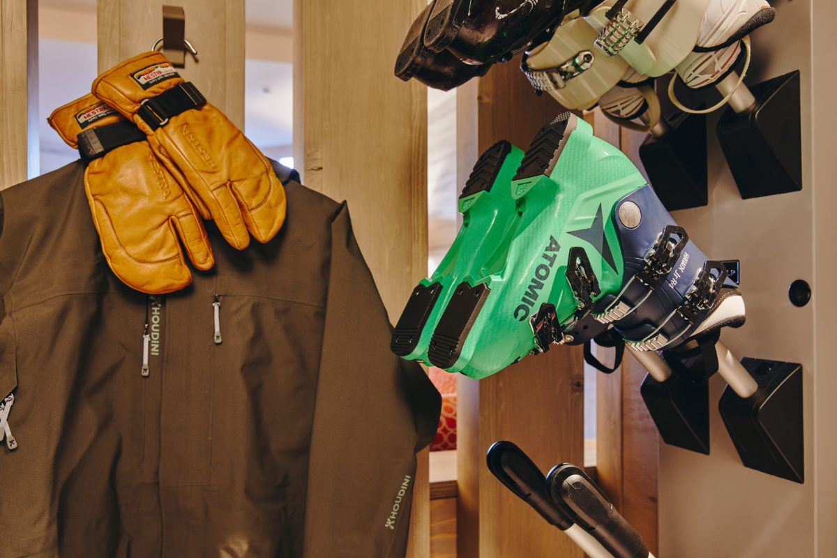 一般的な宿泊施設だと、乾燥室に他のお客さんのものと並べて乾燥させる。限られたスペースに加え、履き間違いや盗難に遭うといったことも少なくないだろう。スイートルームに泊まればそんなお悩みは解消。客室内にブーツヒーターを設置し、スキーやウエア、グローブにヘルメットといったギアたちを収納できるスペースがあるのだ。