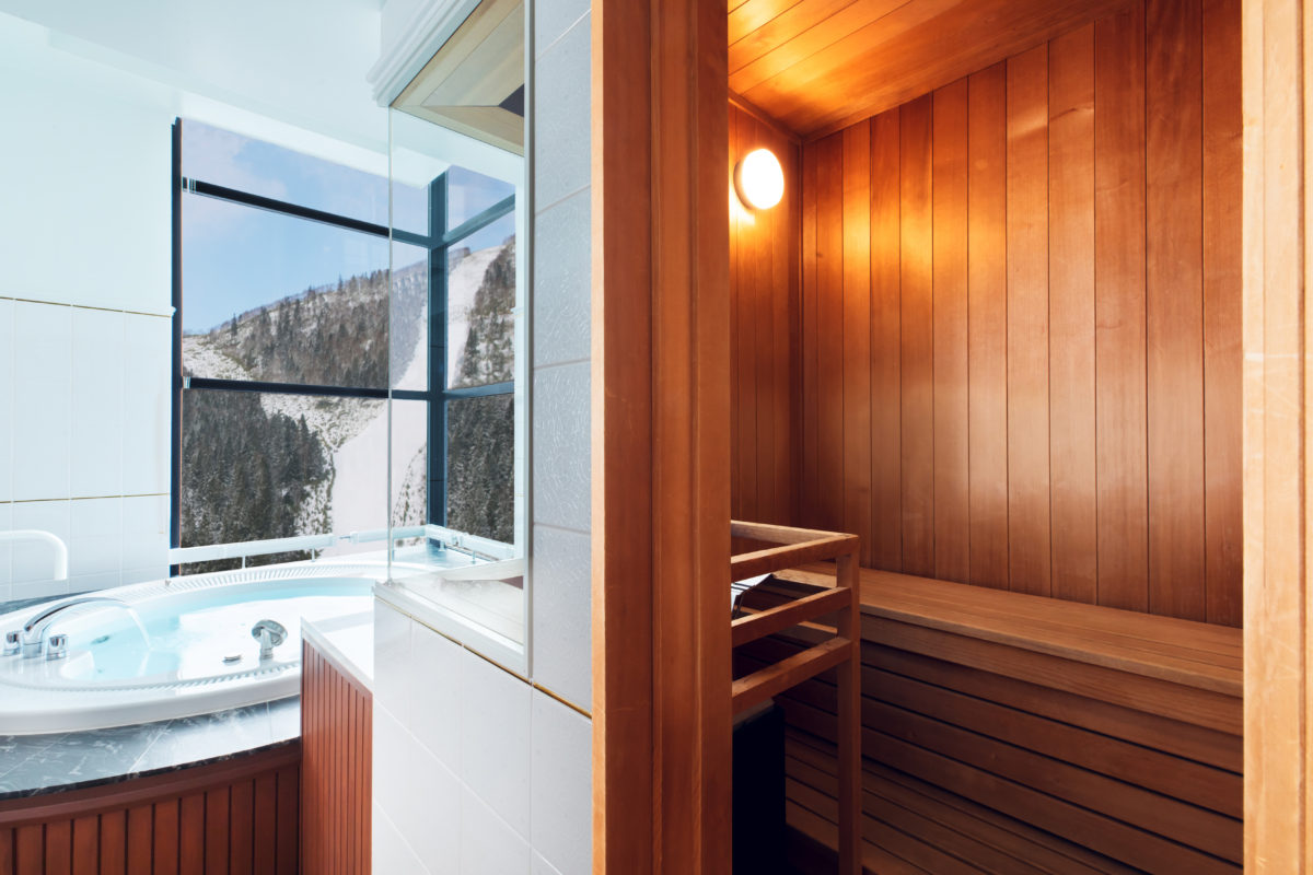 滑り終わって疲れたカラダに嬉しい展望ジェットバスとプライベートサウナが客室内に設置されている。ジェットバスからはゲレンデを眺め、翌日には疲労がとれた状態で楽しめることだろう。