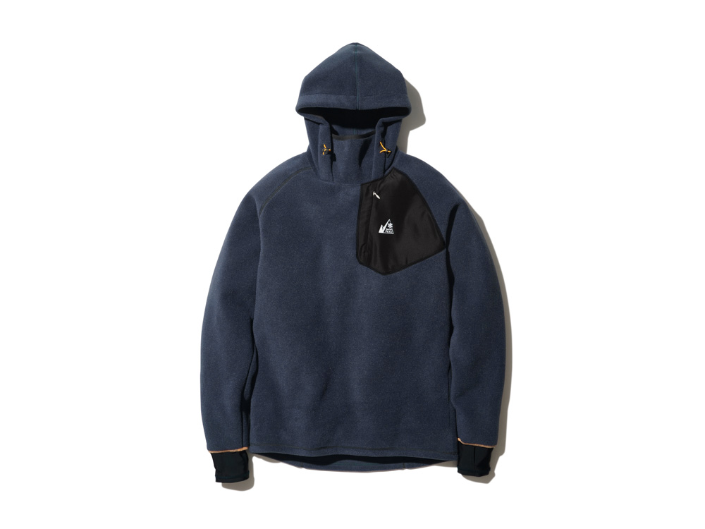 レイヤリングしやすいフリースプルオーバーで、ベーステキスタイルにはPolartec®を使用。軽量かつ高い通気性と耐久性を兼ね備え、あらゆるシチュエーションでも快適に着用できる。フード一体型の立ち襟とフードアジャスター機能で、好みのフィット感に調整が可能。