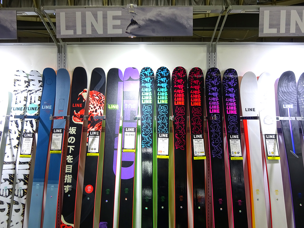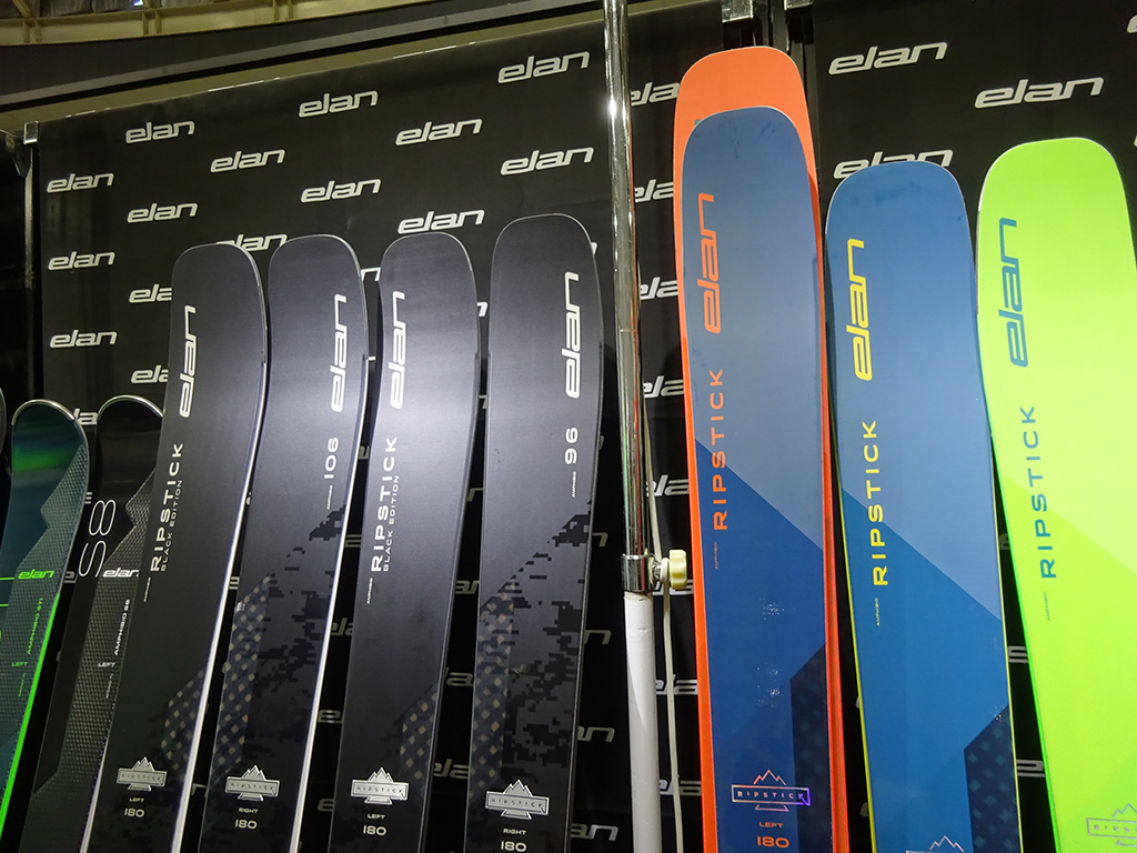 ELANのブースに入るとパッと目に飛び込んできたのが、この黒い板。ELANの看板ともいえる人気のフリーライドスキー「RIPSTICK」。これ1本でゲレンデも楽しいし、山も行けるという対応力が魅力の人気モデルだ。これにBLACKエディションがニューモデルとして追加となった。落ち着いたシックな佇まいで大人スキーヤーに人気が出そう。