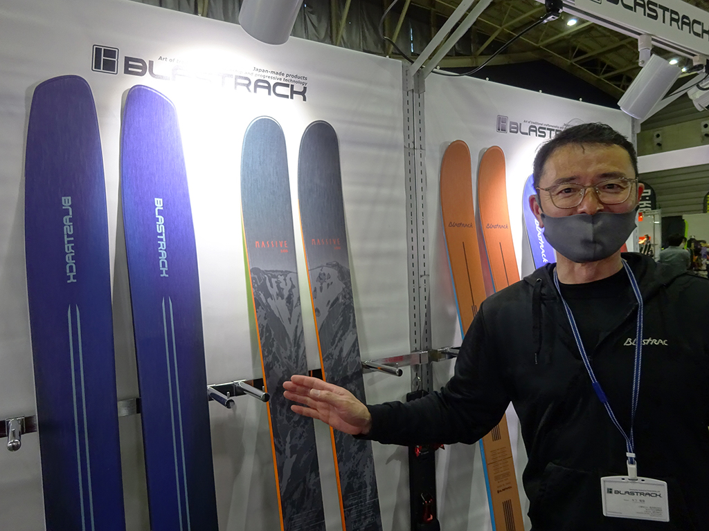 多くの前進があった中でもイチ推しというのがコチラ。超軽量ツアーリングモデルBLAZER TOURシリーズの「BLAZER LIGHT」(写真左)がフルモデルチェインジして「BLAZER LT」(写真右)となってデビューした。もともとツアー向けに開発されたBLAZER TOURだが、山に登らない人にも楽しんでほしいということで、滑走性能を大幅アップ。これまで軽量化を追求したスキーで滑りをしっかり楽しめるものは少なかったという現実を打ち破った自信作という。