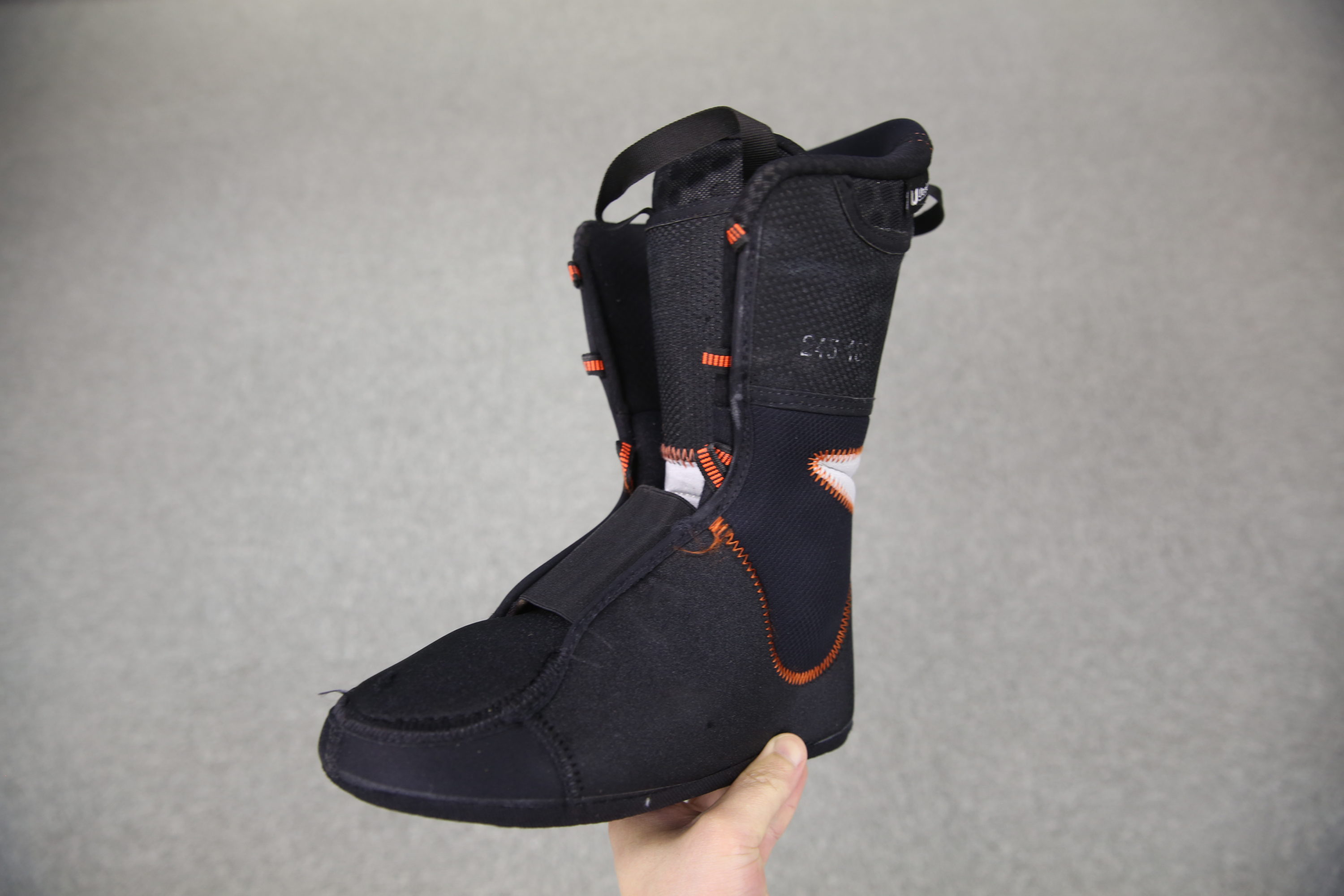 A.基本的にはできない。シェルは言ってみれば伸縮しない一枚のシートなので、仮に部分的に一か所をへこませたとしたら、どこかにその分のスペースが生まれてしまう。ブーツ内のスペースは基本的にはバックルの締め具合で調整するしかいないのだ。