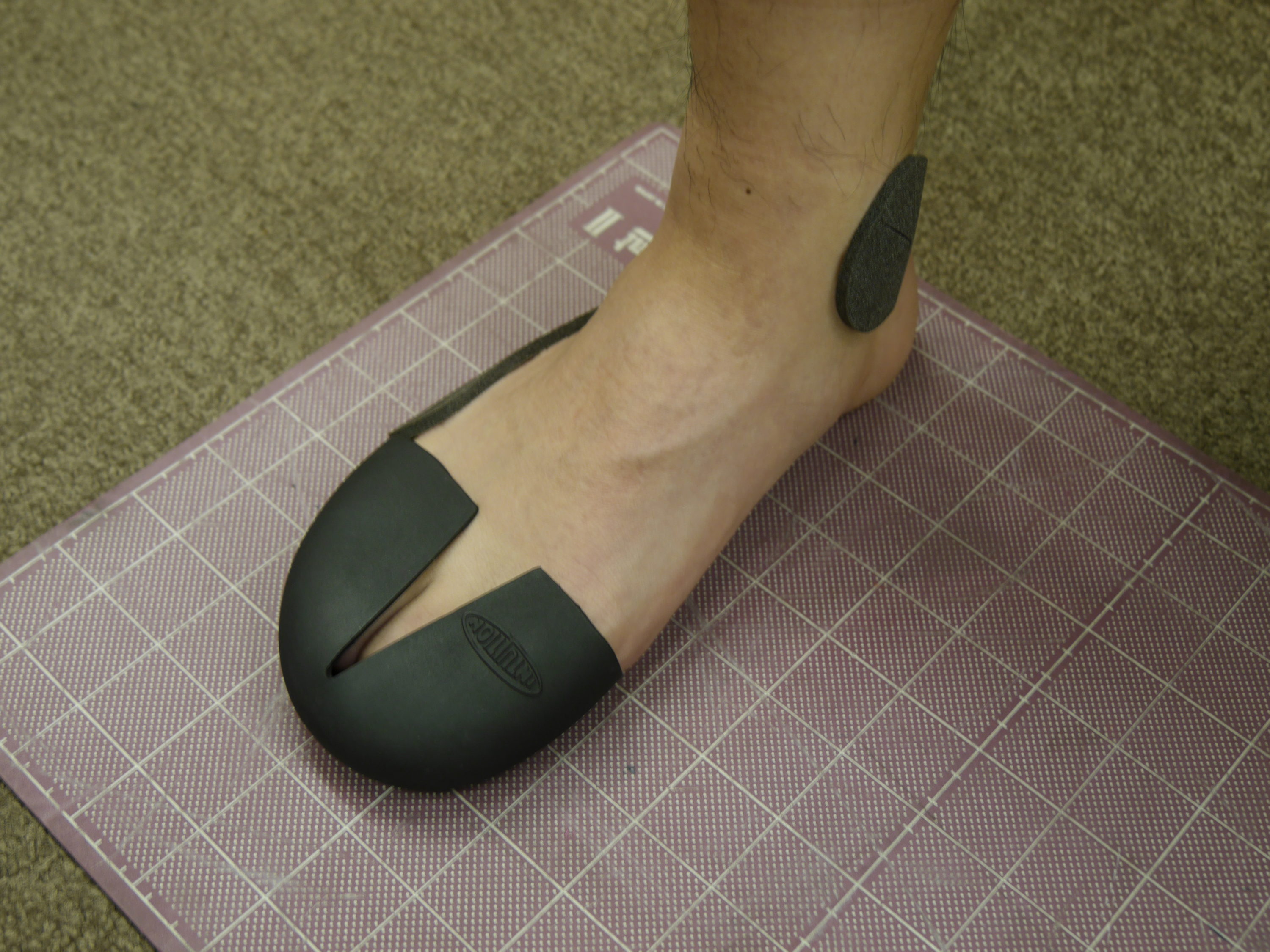 1 足型を測定。当たる場所にパッドを貼る