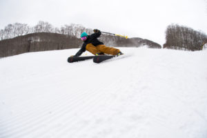 すると、普段なら見逃しがちな地形のうねりが拾えたり、両手を雪面につけるビッテリーターンができたりと、スノーボードのような動きができて、すごく面白かったんです。