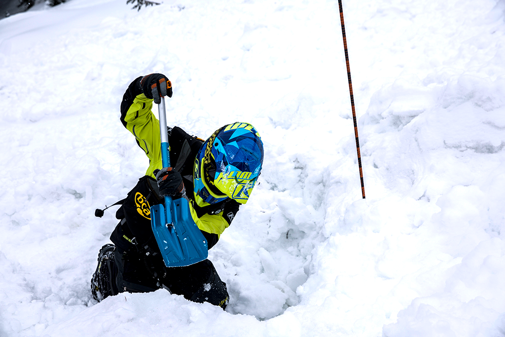 耐久性と扱いやすさを備えた新設計の変形楕円断面のシャフトは頑強さに優れ、伸縮時の氷付きなども防止。またブレードは雪崩救助シャベルの安全基準をクリアしていることはもちろん、体重をかけた際の確実な刺し込みを叶えるため、肩の部分を平らにして掘り手の体重を支えるデザインとなっている。