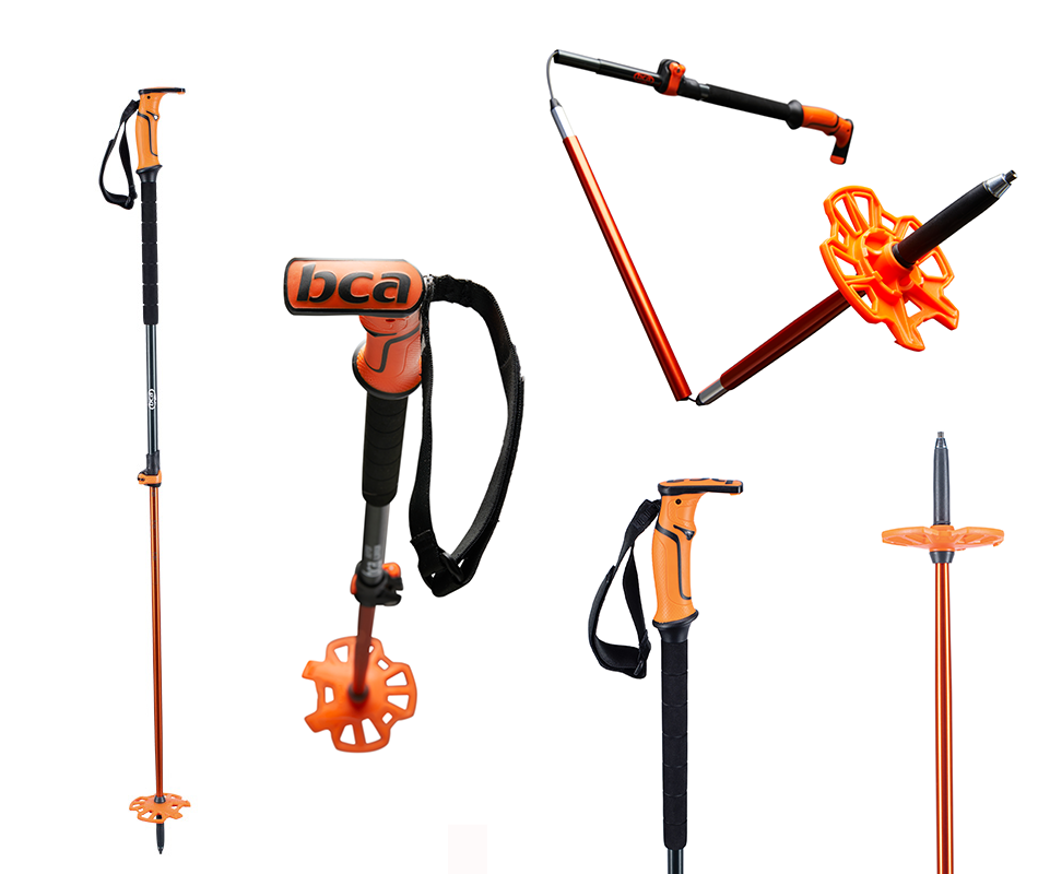 「ステルス(STEALTH)」と名付けられたBCAのプローブはワンアクションで伸展可能な折りたたみ式。アルミ製は240、270、300、330の4モデル、カーボン製は240と300の2モデルがラインナップする。ボデイ外側にはレーザー刻印で深度を示すメモリが掘られており、捜索しながら埋没者までの深さを知ることができる。