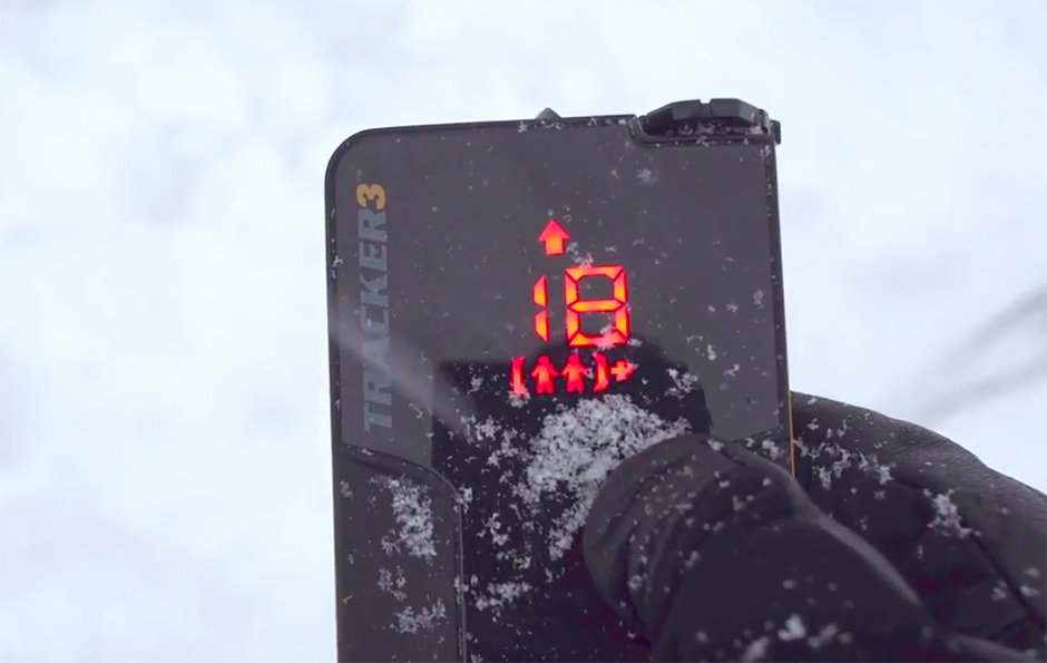 アバランチビーコンは雪崩に巻き込まれて埋まってしまった人の位置を特定するために必要な機器。雪崩に巻き込まれた場合の生存率は15分以内で92%、45分後には26%と急激に低下する。15分以内に素早く発見し掘り出すために、埋没ポイントをビーコンで把握する。