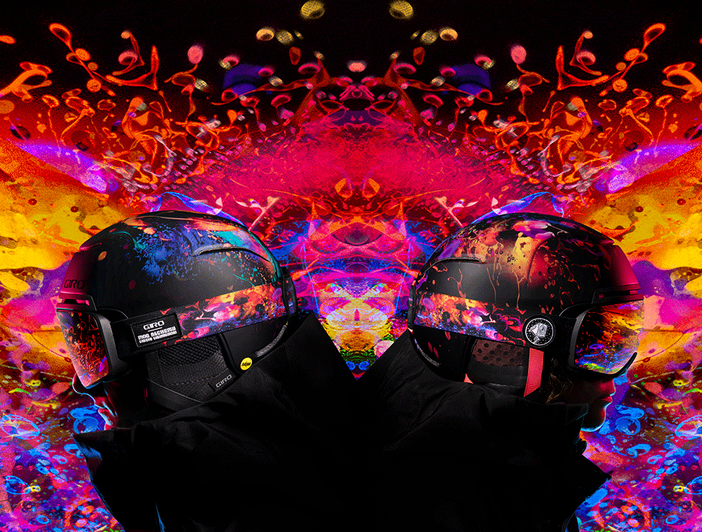 GIROは1970年代初期から今日まで世界のビッグネームミュージシャンとコラボしてきたアナログリキッドライトアーティストのMAD ALCHEMY(マッド・アルケミー)をデザインチームに迎え、コラボモデルを開発。サイケデリックな音楽と雪上滑走快楽主義を見事に融合させて、こんな刺激的なデザインワークを生み出した。