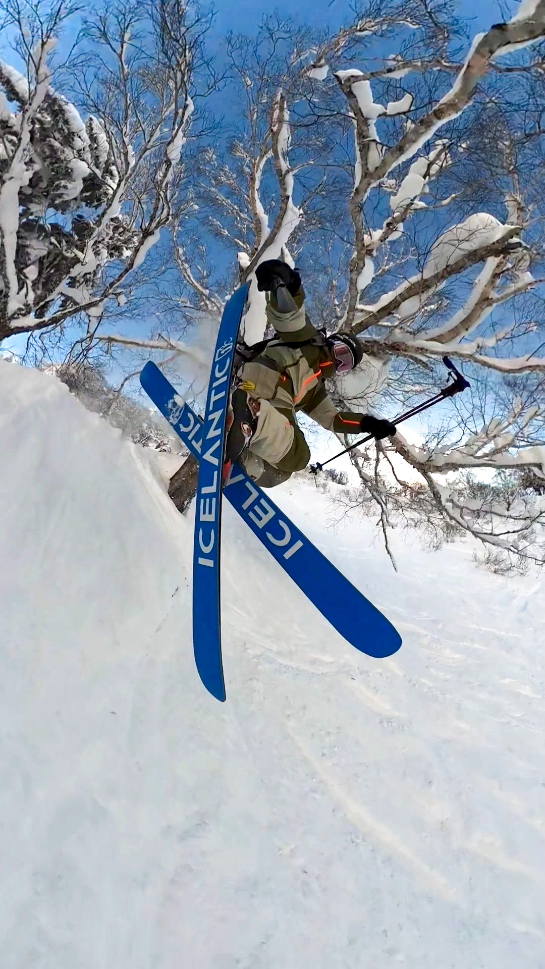 世界中のICELANTICライダーの意見を統括し作られたスキー。足元が117mm、長さ展開も167-177-187cm、指定取り付け位置もドセンターから-7cmと、7という数字にこだわっています。今では珍しいフルロッカースキーですが、サイドカーブとロッカーのRが同一な設計の“リフレクティブ・ロッカー”を採用。幅広な外見からは想像できないほどのエッジグリップでありながら、サーフィンのように地形でスプレーを上げたり、遊び心のある動きも自在にできます。もちろん浮力に不足はありません。硬めのテールは安心してスピードを出せて、ビッグジャンプのランディングでも粘れる。スピンやスイッチも全く問題ありません。パウダーで地形に当て込みながら、グルーミングバーンをガンガン切って、ジャンプも楽しむ・・・山全体を自由に楽しむための欲張りな板です。個人的にはフルロッカー・ファットスキーの独特な乗り味が好き。
