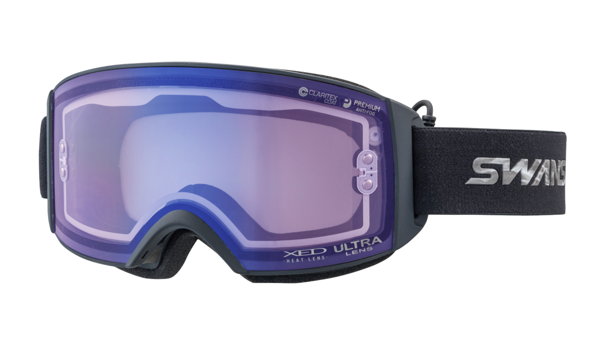 SWANSの人気モデル「RIGELINE」 に’22-23シーズンは新しいレンズが登場。クリアのような見た目から深いスモークレンズのような暗さまでレンズの透過率が変化するという驚きの全天候対応型。可視光線透過率は15%~55%と幅があり、晴天から雪の日、ナイターまで、あらゆる場面でナチュラルな視界を手に入れることができる。グレーベースのレンズは雪面の陰影などもしっかり浮かび上がらせる。このレンズは「RIDGELINE」、「RACAN」、「ROVO」シリーズに搭載される。