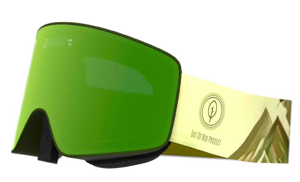 OUTOFが’22-23シーズンにブランドメッセージとして取り組むのが「BIOプロジェクト」。レンズ以外の素材を全てリサイクルかサスティナブルな素材で作るという環境への取り組みだ。ひまし油から創った樹脂でフレームを製作、廃材からリサイクルして創ったストラップバンド、ゴーグルのケースに至るまで、すべてを環境に配慮した形で創る。