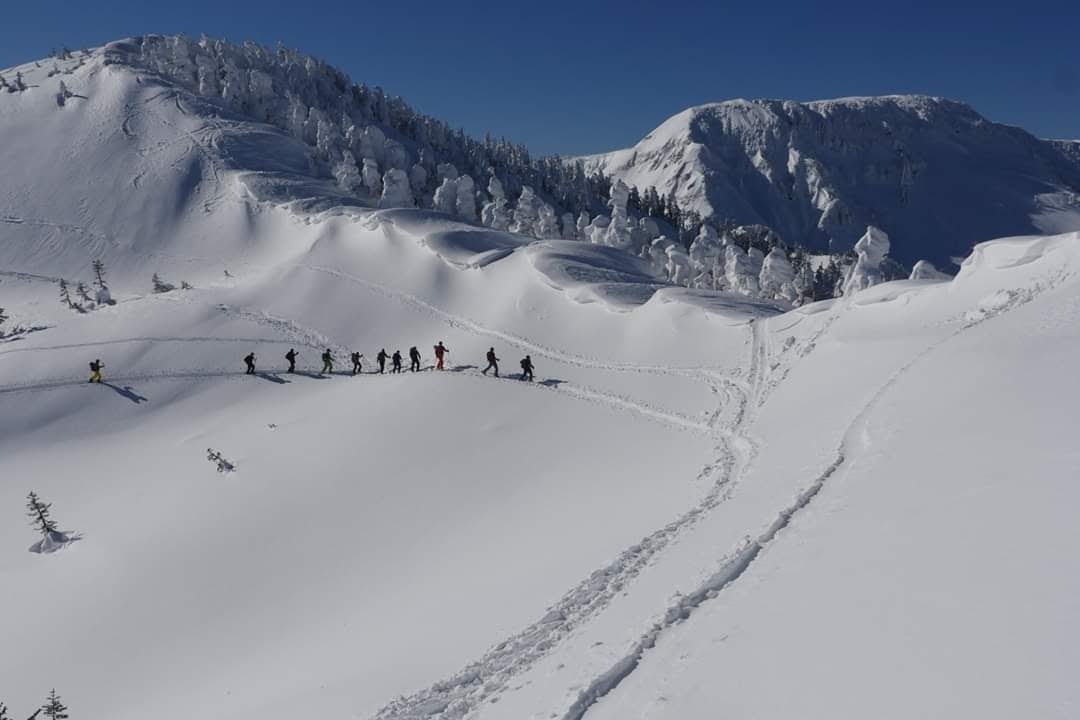 [メインガイドエリア]かぐらスキー場第5ロマンスリフト山頂のBCゲートよりエントリーする各方面/その他:春の立山、月山、富士山ツアー等