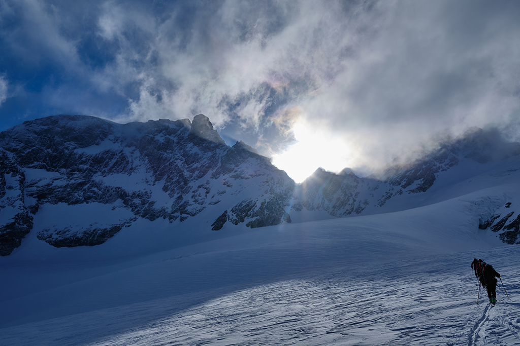 WAYBACK106 179cmにはalpinist 12をセットし、3月中旬の春雪から月山、鳥海山、立山、富士山など春雪からロングツーリングでの使用です。スキーとビンディングも軽量にして、長い登りや急傾斜での登りでも疲れず、安定して登ることができます。ウッドとカーボン繊維のバランスの良さと足元のチタンプレートが斜面変化、アイスバーンにもしっかりとホールドしてさまざままな状況下で安定感を出してくれます。