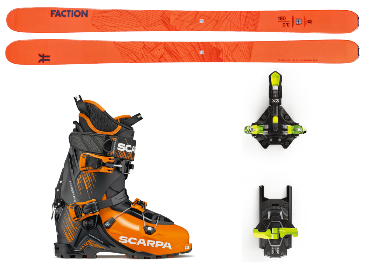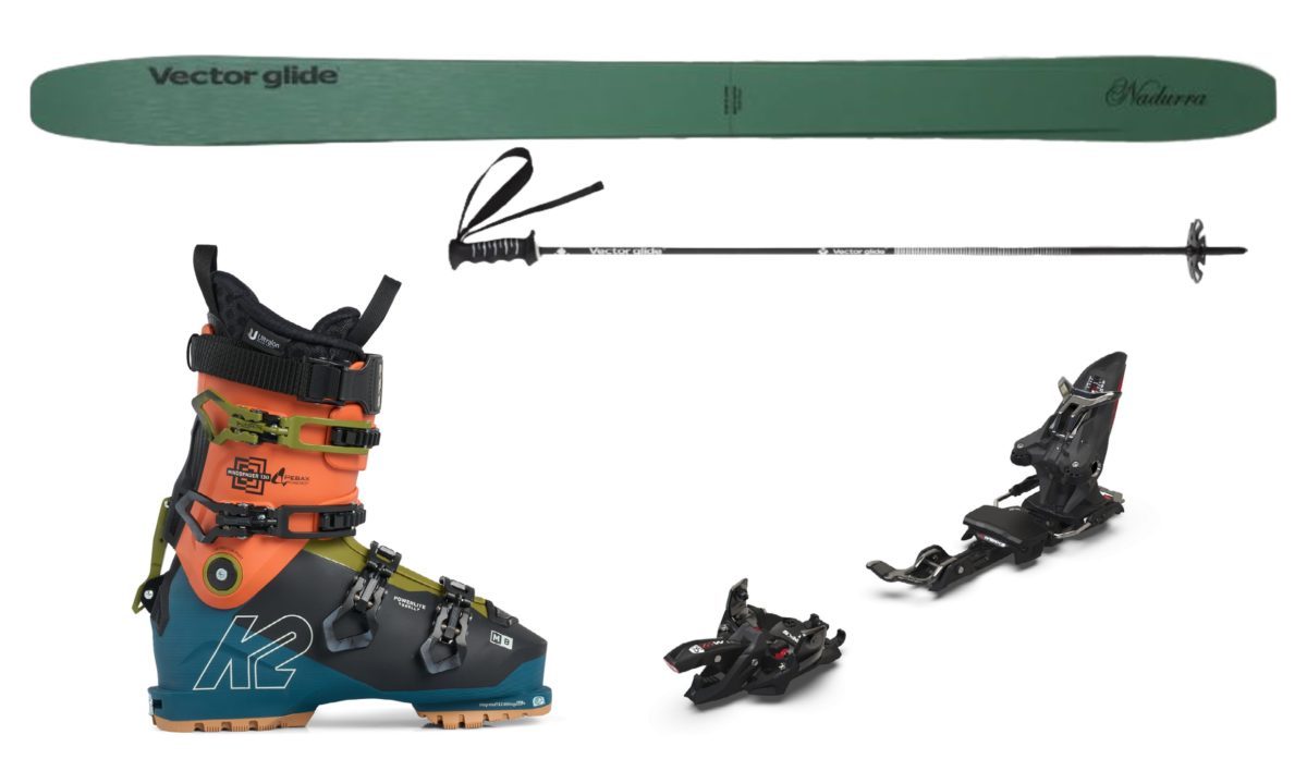 スキーは、長さは身長くらい 幅は100cm前後で、ESCAPER97 NANO(Rossignol) は、操作性を失うことなく軽くていいです。ビンディングは、個人的にはTLTのタイプをお勧めしますが、ST Rotarion (Dynafit) は安心感と使いやすさがいいなと思います。