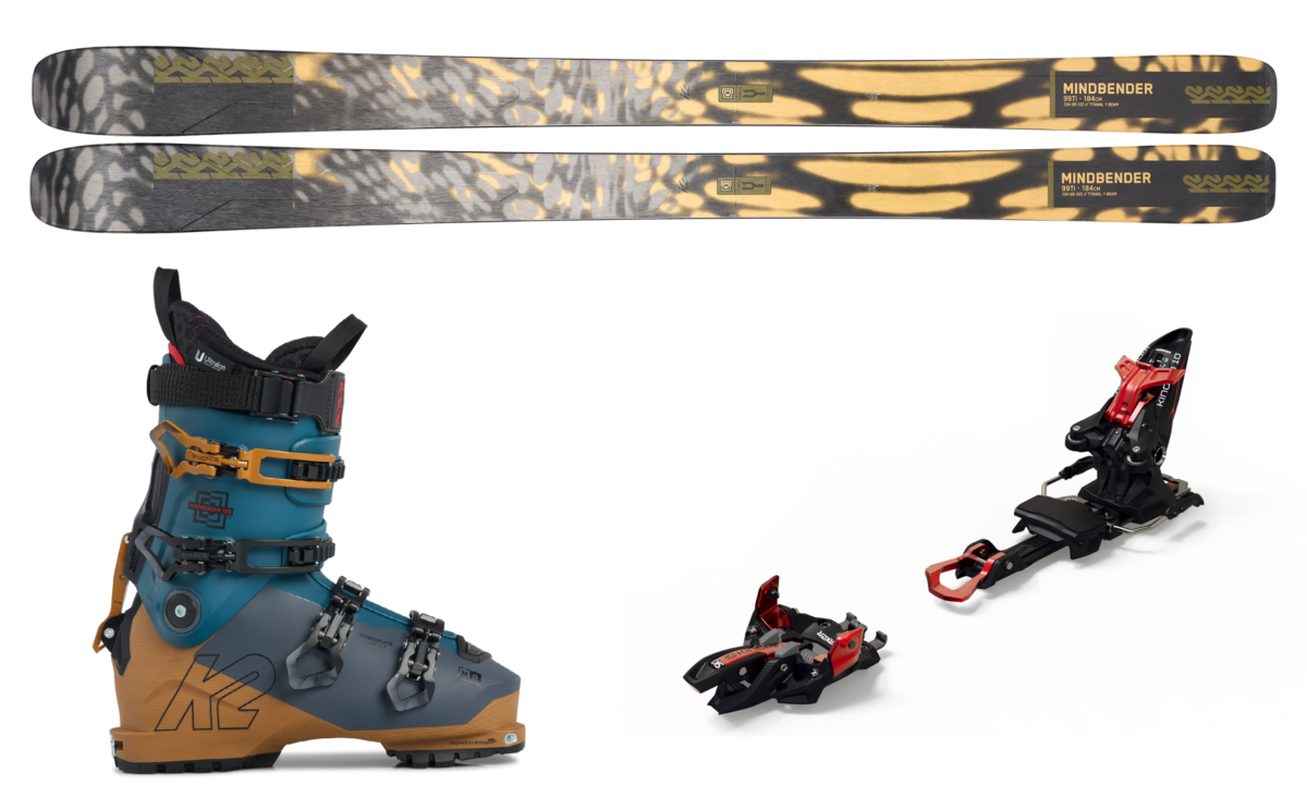 パウダーでも操作しやすい板に軽いビンディングと、軽くてハイクしやすいブーツのセットアップです。スキーのMINDBENDE 99Tiは、太すぎず、パウダーでも浮力があります。スイングウェイトも軽く、パウダーの中でも左右に操作がしやすいです。