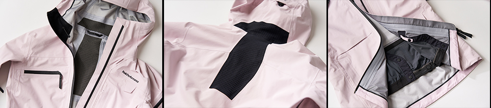 肩〜腕周りが更にストレスフリーになり、気づけば汗抜けが本当に良かったので、記憶にないくらいです。個人的な感想ですが、今までのAlpineシリーズに使用されていたGore-tex®︎の感覚がガラリと変わりました。とにかくハイクしていてツッパリ感もなく、雪山と自分の滑るライン、一緒に滑る仲間だけに夢中になってしまうほど