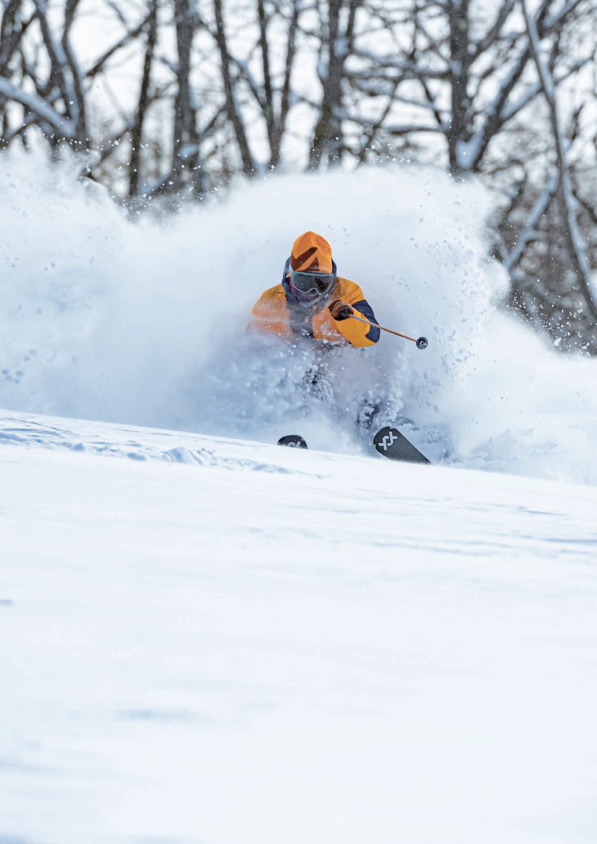 それよりも体の動きを妨げない裁断と柔軟性は大きなメリットだ。深い雪の中を潜って滑ったりするときの上下動のアクションや、段差の大きなコブ斜面でスムーズな下半身の動きを引き出したり、ハイスピードで圧雪斜面を滑るときの切り返しなど、ストレッチ性のあるウエアはスマートな滑りをサポートしてくれるはず。