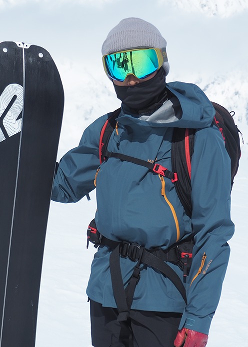 実はこのバックパックの開発に携わっているので、「こうだったらいいな」のアイデアや思いが詰まっています。「NEW SHUMARI 35」、すべてがよいです。特にスノーボーダーに特化した機能を備えています。