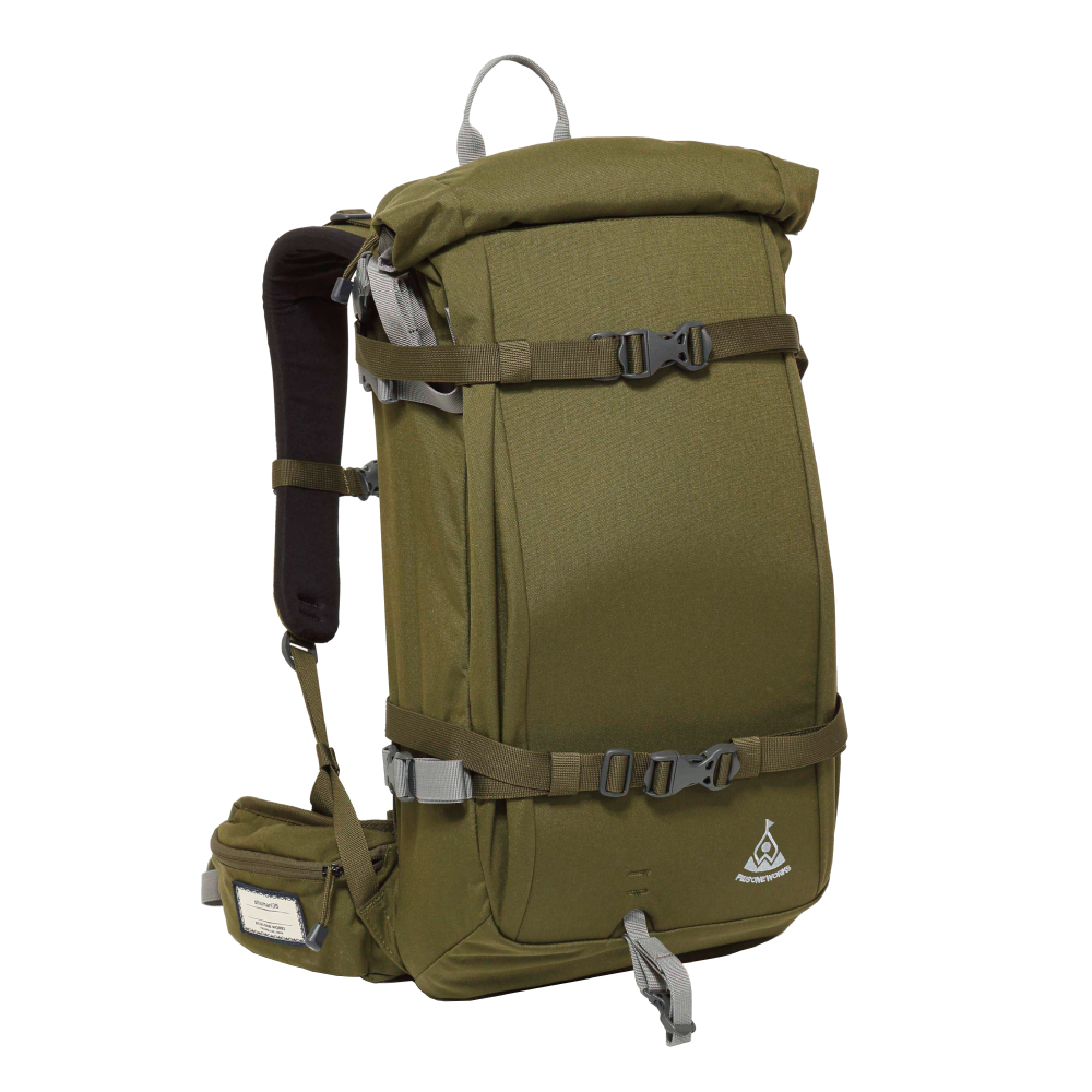 バックカントリーに必要な装備を収納する専用ポケット、またロールタイプからなるアクセス口はヘルメットからアイゼン、そして荷が増えた時などのしまい込みにも重宝する。背面アクセスや、背面長の長さなど、なかなか良いデザインに仕上がっている。バックパック自体の厚みのない造りも、滑り手からすれば、より重心が体に寄せられる滑走に良い形でマッチするバックパックである。