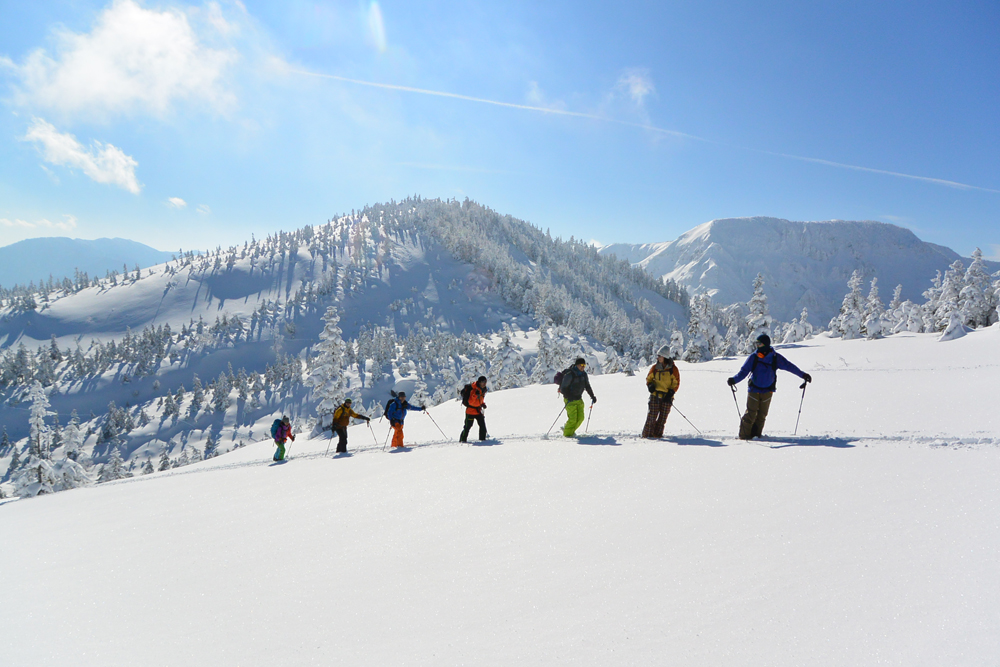 [メインガイドエリア]かぐらスキー場第5ロマンスリフト山頂のBCゲートよりエントリーする各方面/その他:春の立山、月山、富士山ツアー等