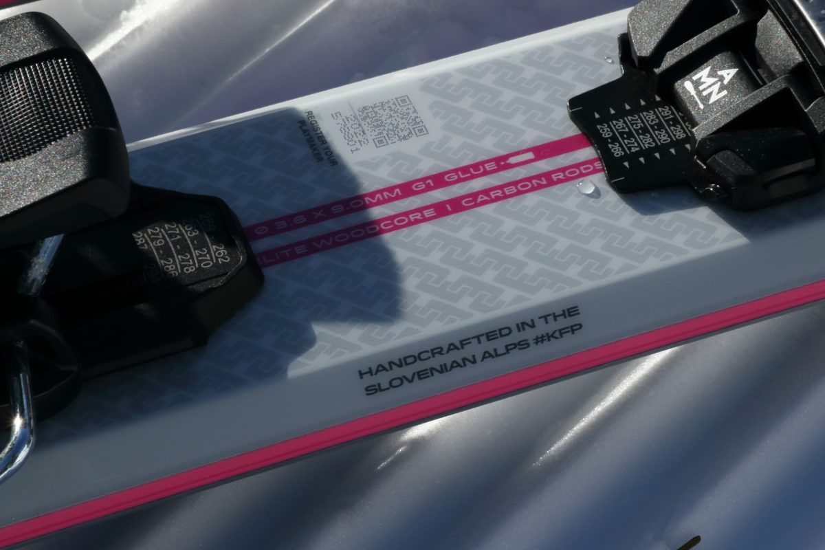 PLAYMAKERは、2本のカーボンチューブをセンター部分、ビンディングのトゥからヒールピースの間ぐらいの長さで施している。それにより、トップとテールはツインチップで柔らかく、取り回しやすいが、センター部分はしっかりと強度があり、雪面へのグリップ力も安心感がある。その結果、高い操作性とパワフルな安定感のある滑りが実現できるだろう。ウエスト幅は91㎜(グレイ)と101㎜(ホワイト)の2種類だ。