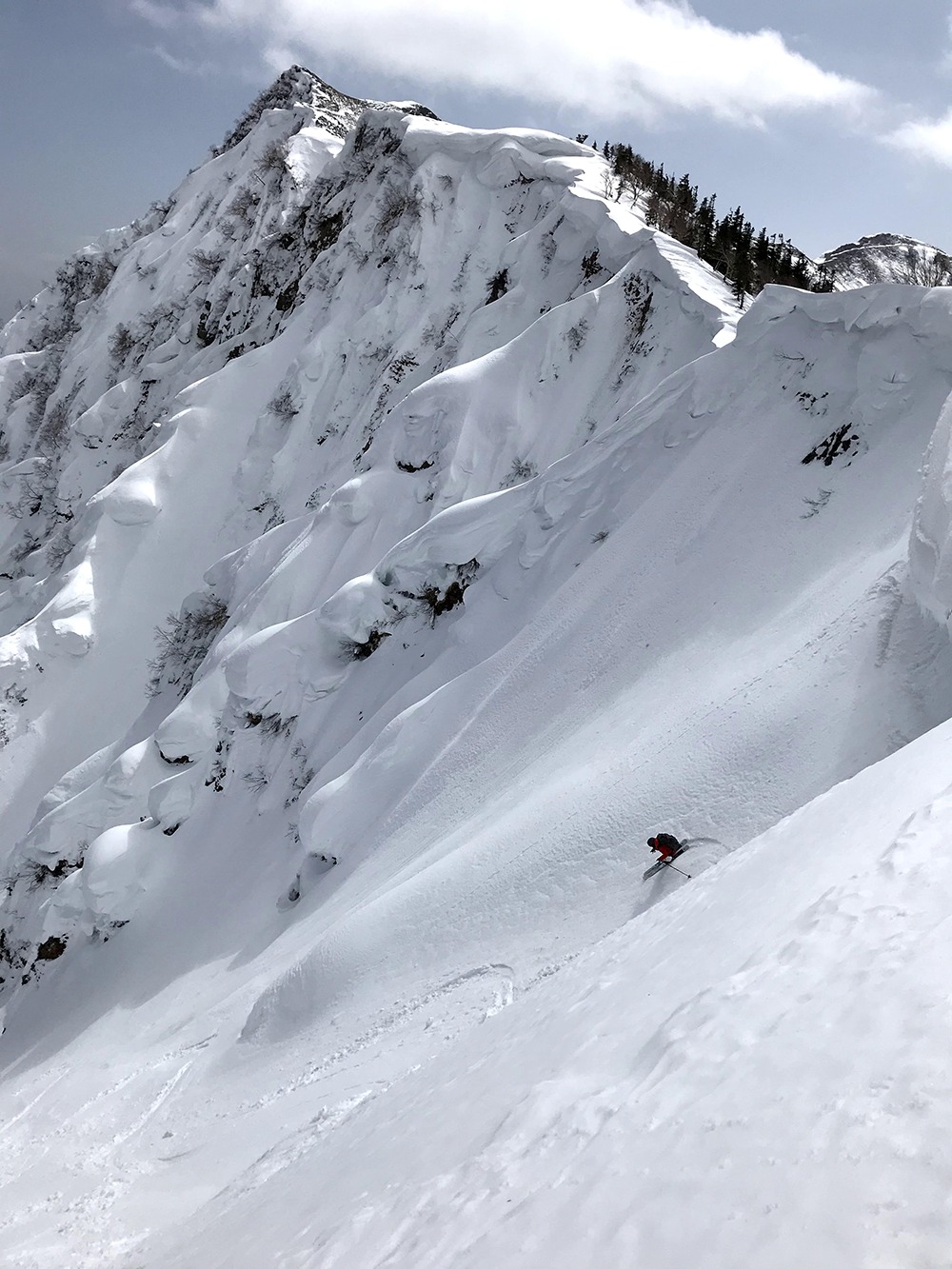 | 斜面の内容 | 雪質、障害物と斜度に応じて出来るだけ不安を感じないようライン取りピッチを設定します | パウダーであればバックカントリーならではの30度前後から40度程度までの斜面や少し傾斜を落としたツリーラン、残雪期であれば30-35度程度のオープンバーンを滑ります | 歩きごたえのある里山や雪洞泊の奥地やシークレット含めてご要望にお応えします |