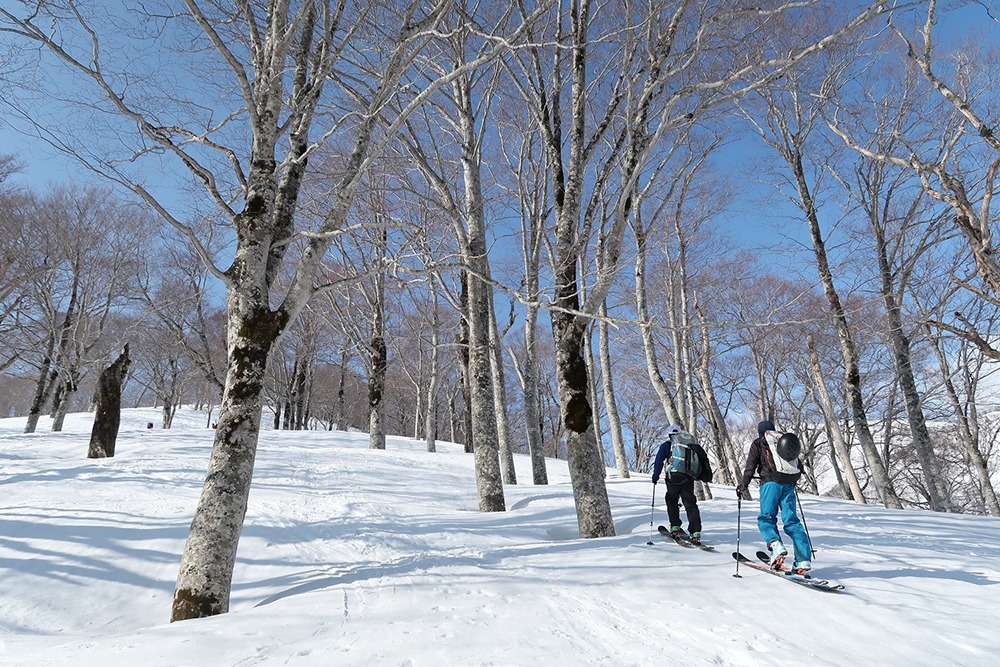 | 斜面の内容 | 斜度は20~35度のブナ森のツリーランを楽しみます。 | 斜度は20~35度のオープンバーンとツリーランを楽しみます。登りの体力と滑りの体力が必要となります。 |