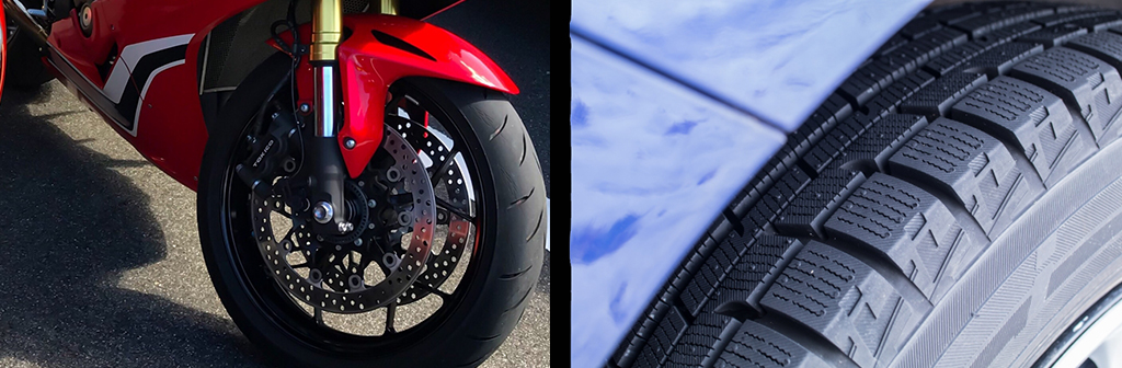 二輪車のタイヤは丸い。対して四輪車のそれは平たい。これは、それぞれターン(コーナリング) の性質が異なることからきているもの。であれば、例えば二輪車的に乗るのであれば、このベースビベリングを強め (↓写真の左側) にし、四輪車的に乗るのであればそれほど強めない (↓写真の右側)、などもひとつの方法。