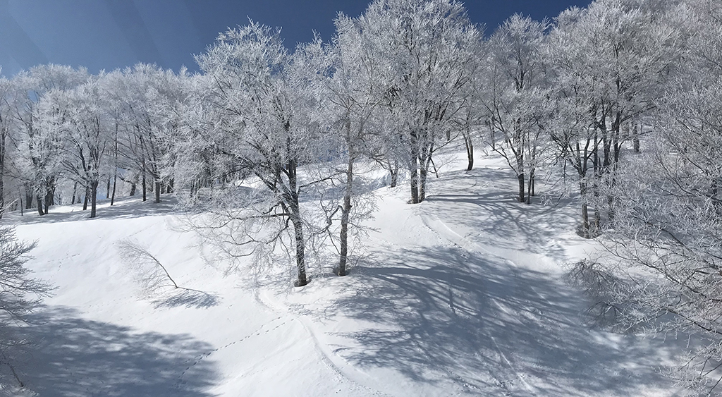 経験者なら「豪雪ツリーランガイド」もある。夏油を知り尽くしているガイドが多彩なツリーランエリアの中からその日の雪の状態や天気などを考慮し、おすすめスポットに2時間みっちりと案内してくれるというもの。