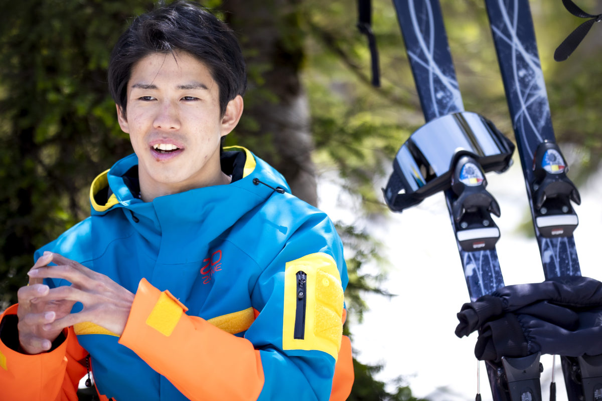 堀島行真(以下堀島):いまの話、ちょっとわかる気がします。リフトが近くにあると意識しちゃいますね。モーグルの競技に限らず、自分の足ではスキーのスピード感って出せないと思うんです。走ってもスキーのようなスピード感は絶対出せない。なのでスピード感、その中でコブ斜面を滑るのは楽しいですね。自分の限界を超えている感じがするので。