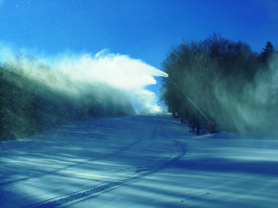 それにしても、寒いスキー場でなぜ、あの貯水池の水は凍らないのだろう? もちろん、それは凍らないようにしているからだ。中をポンプで撹拌して凍結を防いでいるのだ。新規で降雪機や造雪機を導入しようとした場合、一苦労なのがこの貯水池と水の確保だ。スキー場は原則、山の上にある。となると、近くの沢は細く、水は決して潤沢ではない。また、沢の水を勝手に引く訳にもいかない。そうした、物理的問題、社会的条件をクリアして、初めて人工雪が現実のものになるのだ。
