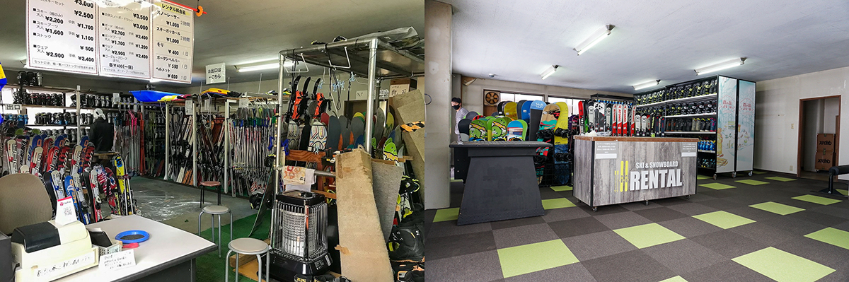 外観はいぶし銀な雰囲気ですが、中に入ると、綺麗でクリーンな見た目。もちろん、レンタル用具はウエアも含めてすべて一新。スキーやスノーボードだけでなく、個性的な乗り物も楽しめます。