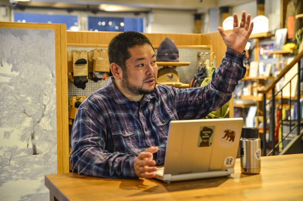 「気候危機の現状に触れ、雪がなかったら私たちのビジネスは成り立ちませんよね、という話をしました。POWの活動を紹介して、チラシやポスターをお店に置いてくださいとお願いしました」