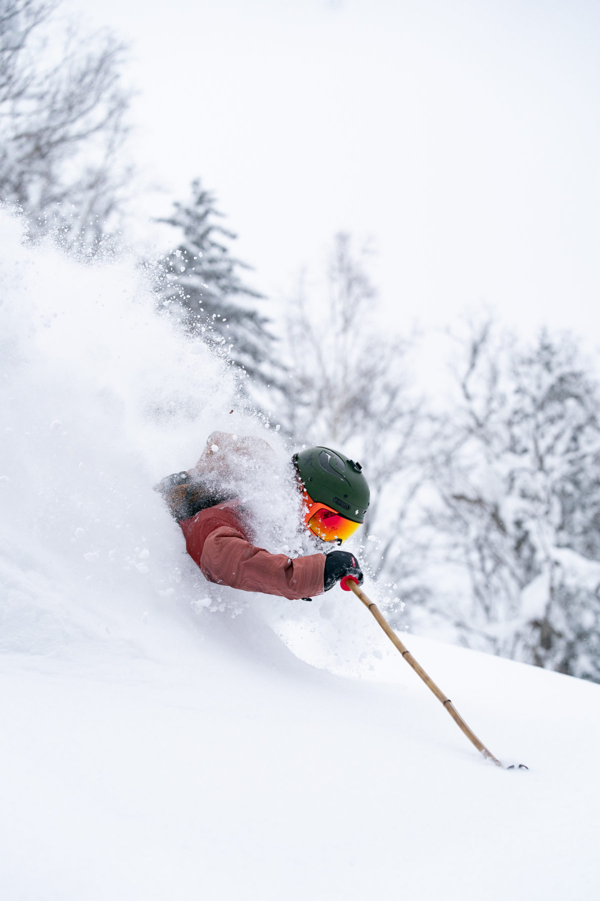 千葉泰 ちばゆたか 1992年6月20日生まれ。札幌市出身。北海道内の山々の崖を飛び、狭いシュートを攻めるそのライディングはInstagramを中心に発信しており、国内外を問わずファンをもつ。一方で竹を使った地球に優しいをコンセプトにしたポールブランド「deerhorn_poles」も主宰。