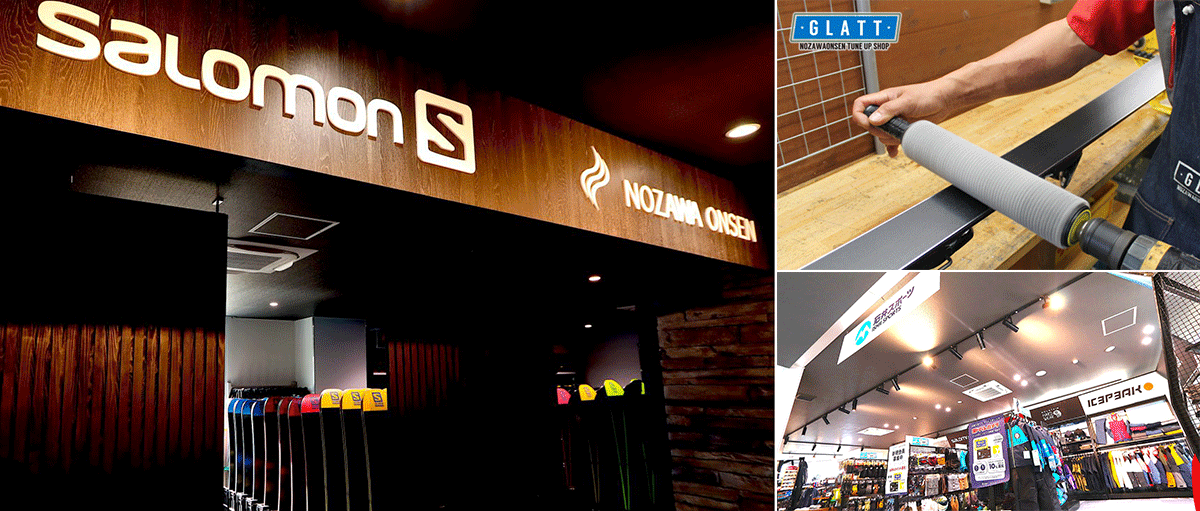 2階のTune-up shop GLATT(グラット)では、チューンナップはもちろん、滑走する時期・雪質・滑走エリアに応じた最適なワックスを選択して、今日の野沢の山で誰よりも滑る板を提供してくれる。レンタルコーナーのSALOMONステーションではSALOMONのファットスキーも借りられるので、パウダーに当たったら現地で乗り換えというのもいい。そして、石井スポーツのコラボショップも入っているので、雪上で例えば「曇らないゴーグルが欲しい!」となれば即調達できるのも便利。滑りをより楽しむために必要な環境が万全に整っているのだ。
