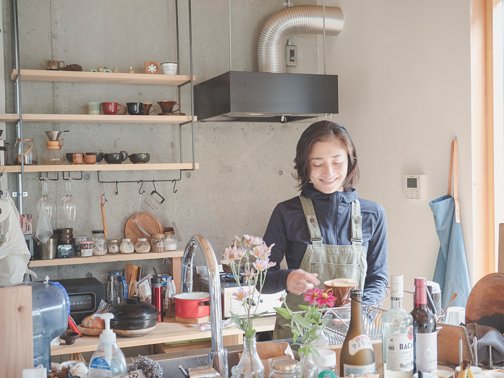 O これまでは、私があちこち旅して、行く先々で豊かな暮らしを垣間見たり、たくさんの刺激を受けてきました。それは子どもの時に、両親にスキーやキャンプに連れて行ってもらった頃からずっと続いていて、数々の自然体験が、今の自分自身の在り方にもつながっていると思います。移住して、都会から友達が遊びに来てくれるようになって初めて、迎え入れる立場の気持ちがわかるようになったんですね。自家製野菜を食べてもらったりお土産に持たせたり、山菜採りに連れて行ったり、景色のいいところへ案内したり。すっかり田舎のおばあちゃんみたいな気分になってしまって、田舎自慢です(笑)。