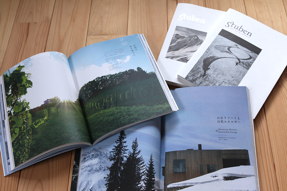 2号「山岳リゾートと自然エネルギー」という企画では、自然資源を活かしたエネルギーを先進的に取り入れているヨーロッパや日本の地域を特集。3号の「雪国の食と暮らし」企画では、国内でスキーやスノーボードをライフスタイルに、グリーンシーズンは自然と向き合いながら、”食”について真正面から取り組む方々の様子を紹介している。気になった方は、ぜひともご覧いただきたい。バックナンバーは、『Stuben Magazine』のオンラインショップで取り扱っている。