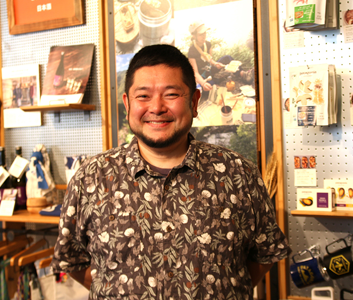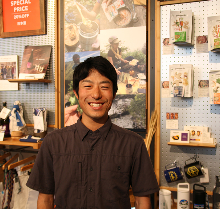 この笑顔でユーザーを迎えてくれる店長。子どもの頃からスキーに親しみ中学生でスケートボードに出会い、後にスノーボードを始めた。冬はニセコに籠り、札幌・秀岳荘のパタゴニアストアで働いたのがきっかけで入社。冬のニセコ通いはいまも欠かさない。