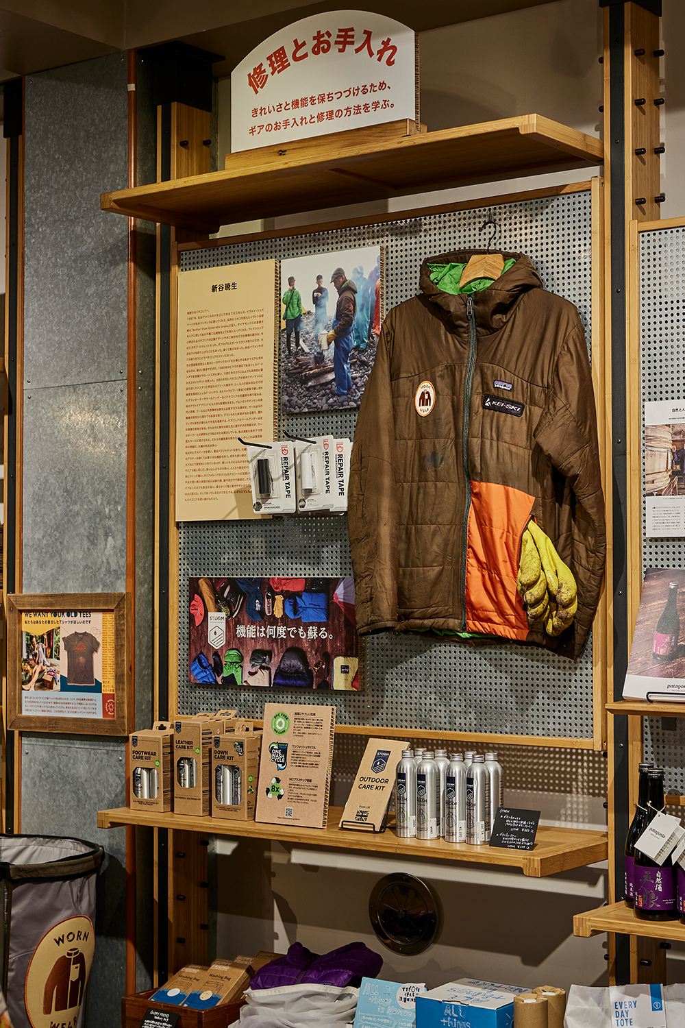 神田ストアでもフロアに写真のような展示を行い、「Worn Wear」によるウエアの修理と手入れについてメッセージを発信してきた。