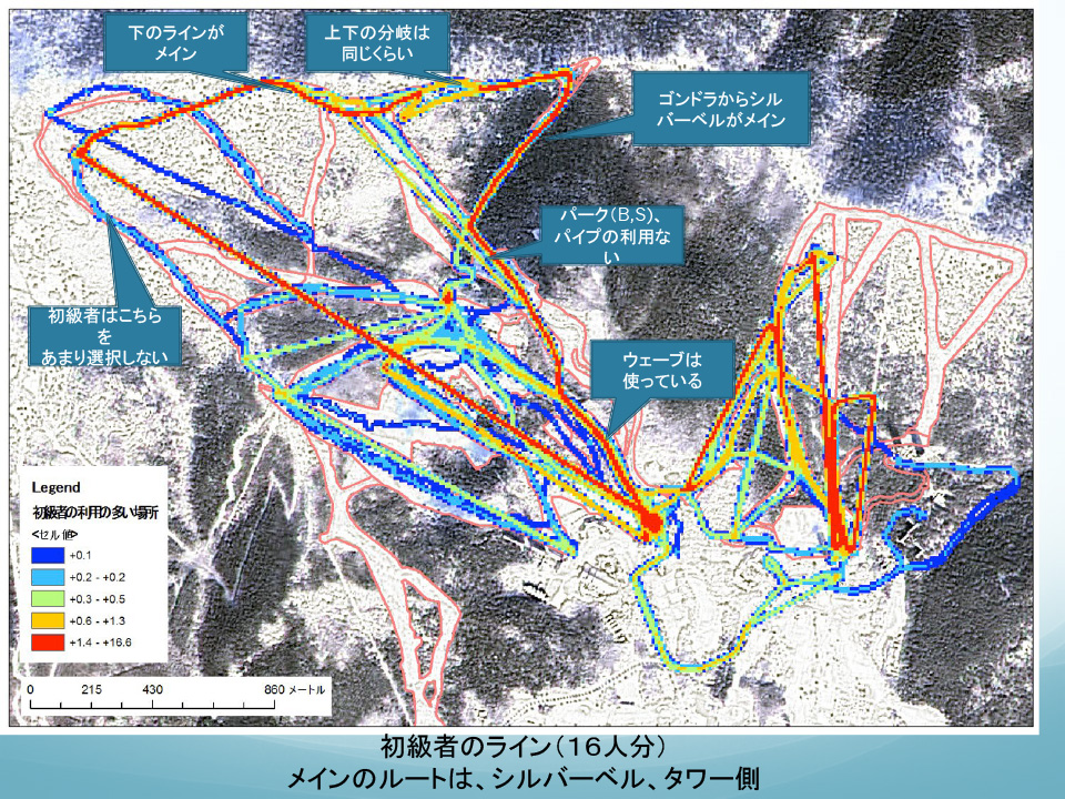 吉村さんの行った研究とは、シンプルにいえば、ユーザーや圧雪車にGPSを装着し、その滑走ログデータを収集し、その結果を分析したというもの。