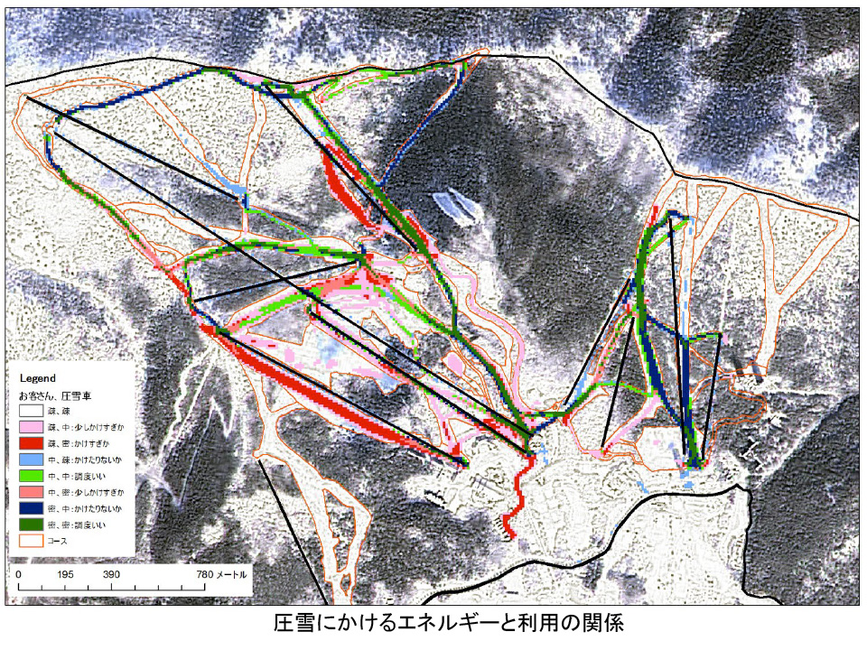 圧雪:魅力アップと省エネを両立する方法をつくる(圧雪場所×ユーザーの滑走軌跡)