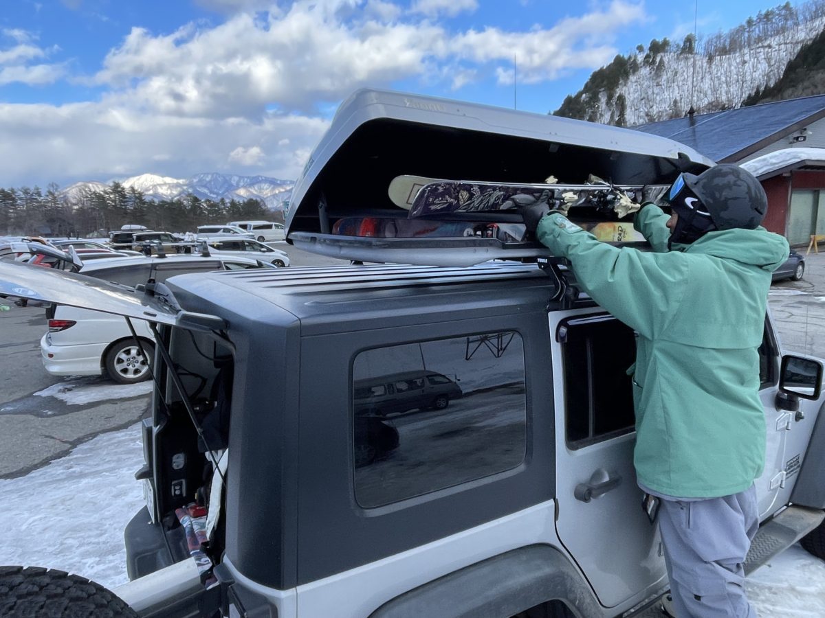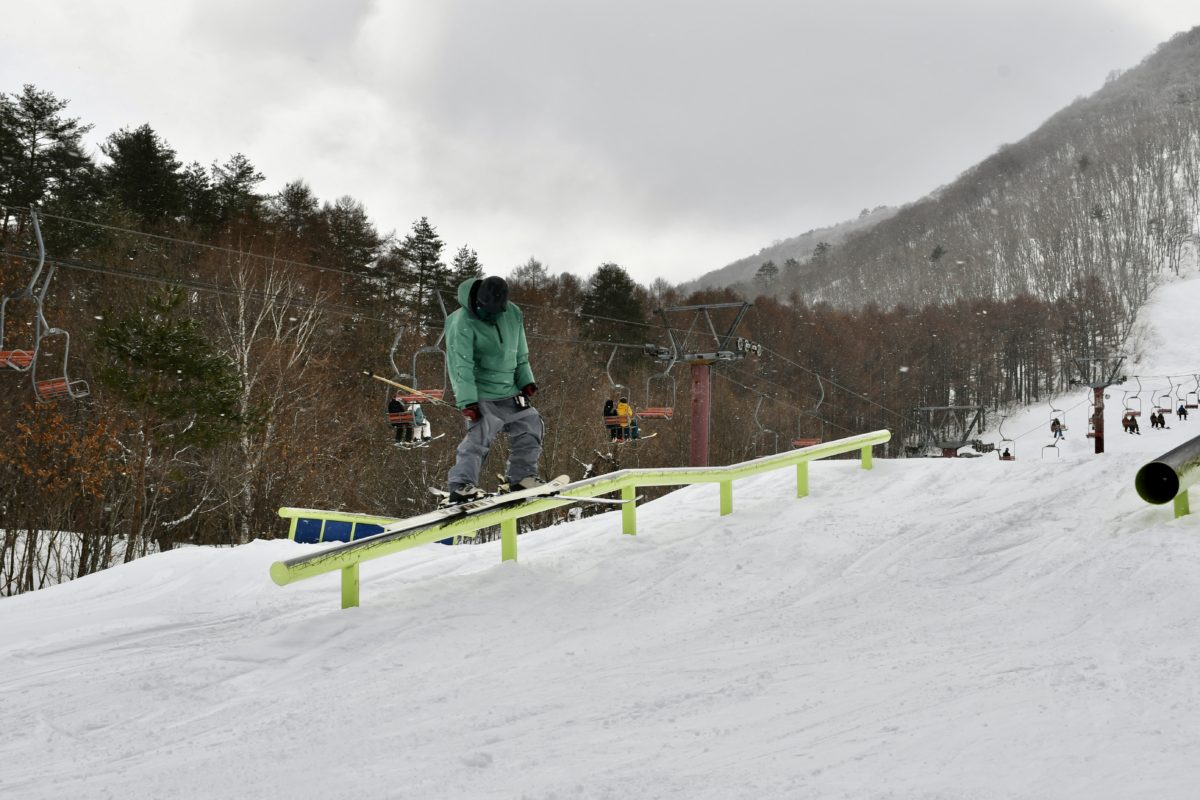 ちなみにスキースタイルといえば、僕、自分のレールを持ってるんです。組み立てできる4mのレールです。足がバラせるので、スキーキャリアに積めるんです。だからWranglerに積んで、6月中旬まで志賀の渋峠とかで滑ってます。その頃、下界は20度あるのに山の上はマイナス5度とか。だから観光に来た人がけっこう変な目で見ていきます。でも僕らの感覚だと雪があるならなくなるまで滑ろうよって。それが終わったらオフトレしようって感じです。